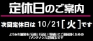 2025年10月21日(火)設備点検のため、臨時休館日となります。