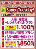 Super Tuesday(9月の平日毎週火曜日は、岩盤浴がオトク!) 2025年9月の平日毎週火曜日(9月2日、9日、30日)は・・・ Super Tuesday!岩盤浴のオトクなプランをご用意!…