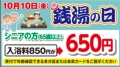 銭湯の日(10月10日は、シニア入浴料650円!) 2025年10月10日(金)は・・・ 銭湯の日記念!入浴料がお得な日! シニア(65歳以上)のお客さま⇒入浴料650円 (※)シ…